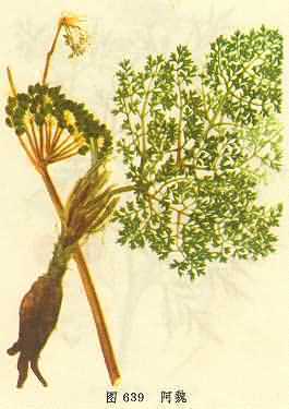 【来源】为伞形科植物阿魏、新疆阿魏、阜康阿魏的树脂。 未开花前采收。挖松泥土,露龈部,将茎白根头处切断,即有乳液自断面流出,上面用树叶I覆盖,约经10日渗出液凝固如脂,即可刮下。再将其上端切去一小段。如上法采收,每隔10天一次,至枯竭为止,共约3个月。置阴凉干燥处,密闭保存,防热。